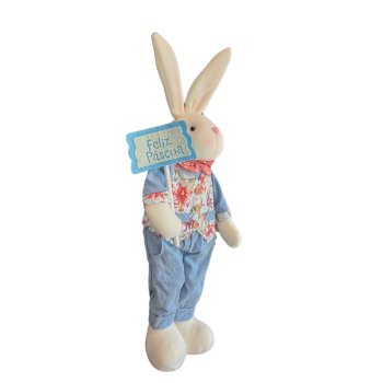 Coelho de Pelucia Macacão Azul e Colete florido 70cm