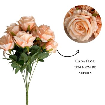 Buque De Rosas Cor Salmão 51cm C/ 10 hastes.