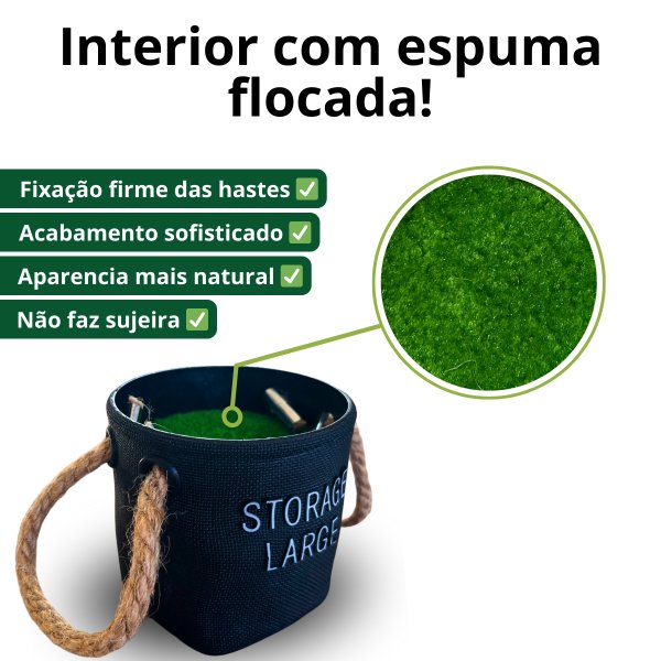 Vaso de Plastico STORE LARGE com alça de Juta, interior com esopor e grama sintetica Dimensões: 10x10