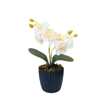 CONJUNTO ARRANJO MINI ORQUIDEA BRANCA NO VASO DE POLIETILENO BRANCO 20CM