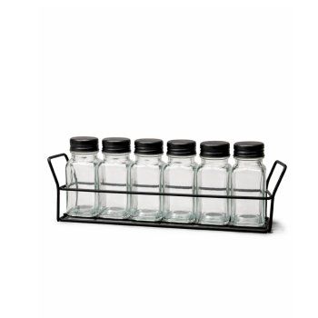 Dê um toque de charme industrial à sua organização! Este kit com 6 potes de vidro quadrados e suporte em metal preto ou prata é a união perfeita entre beleza e funcionalidade. Mantenha seus temperos favoritos sempre à mão e com muito estilo.