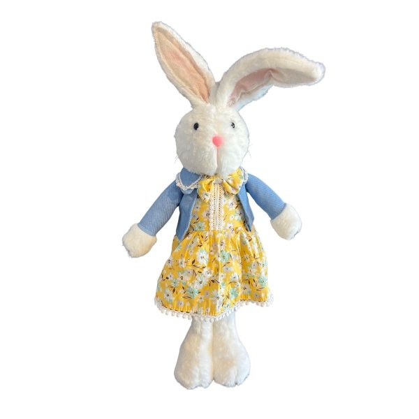 Discrição: Coelha de Pelucia Com Vestido Amarelo Casaco azul