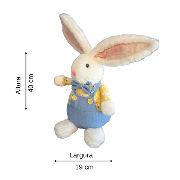 Coelho de Pelucia Com Macacão Azul Camisa Amarelo 40cm