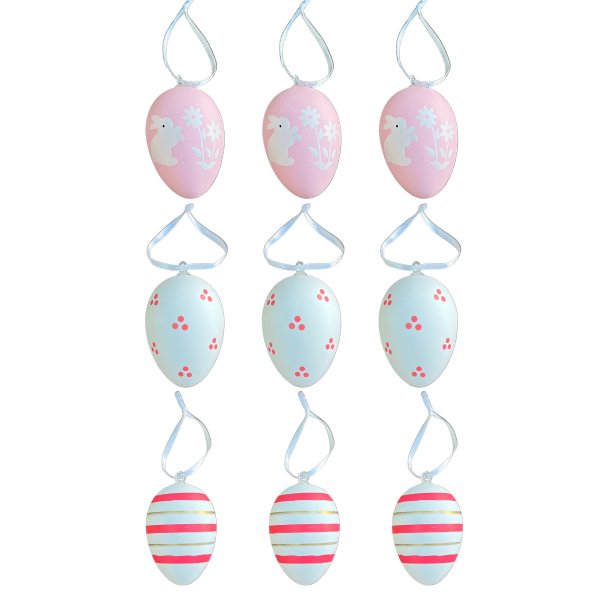 Ovos Decorativos c/ 9unidades para Pendurar Material: 100% plastico Dimensões: 7cm