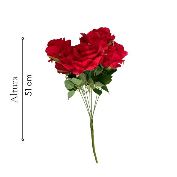 Buque De Rosas Vermelhas Contem: 10 haste Composição: Arame/ Plastico e Tecido Dimensões: 44cm altura(Medidas Aproximadas)