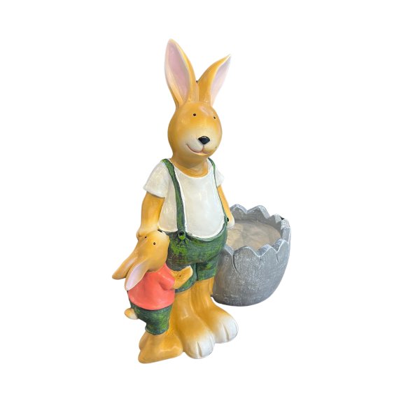 Enfeite Coelho de Resina Com Cachepot Decorativo 42cm