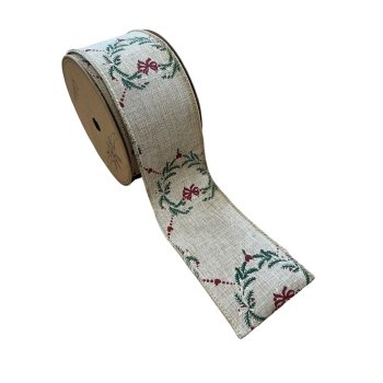 Fita Decorativa Bege Vermelho Verde