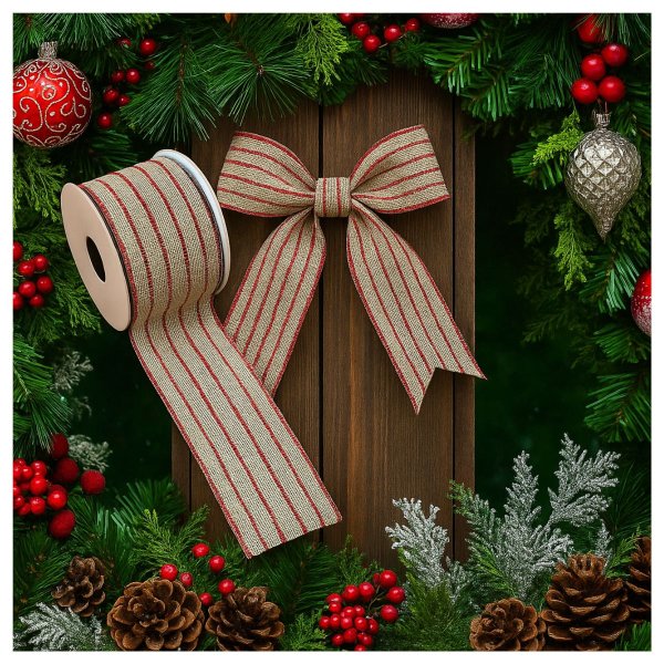 Fita Decorativa Listra Vermelha Com Gliter Fundo Bege - 9,30 Metros