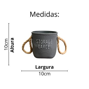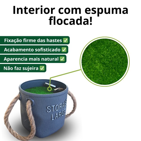 Vaso de Plastico STORE LARGE com alça de Juta, interior com esopor e grama sintetica Dimensões: 10x10