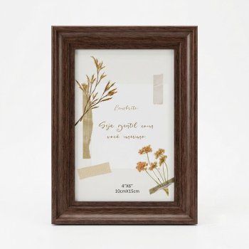 Porta-retrato 10x15 cm com moldura em acabamento amadeirado, design moderno e elegante. Ideal para fotos 4x6”, perfeito para decorar salas, quartos, escritórios ou presentear com estilo e delicadeza.