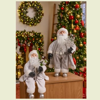 Papai Noel Em Pé Cor: Prata Com branco e gliter Material: Tecido e Plastico Dimensões:48cm de Altura X 25 de Comprimento Dúvidas? Fale com a gente pelo WhatsApp!