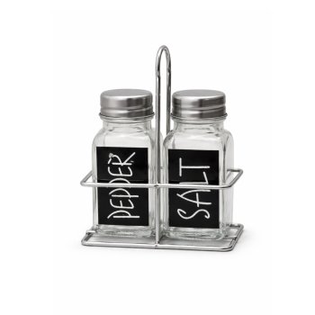 SALEIRO E PIMENTEIRO + SUPORTE ARAMADO PRETO/PRATA